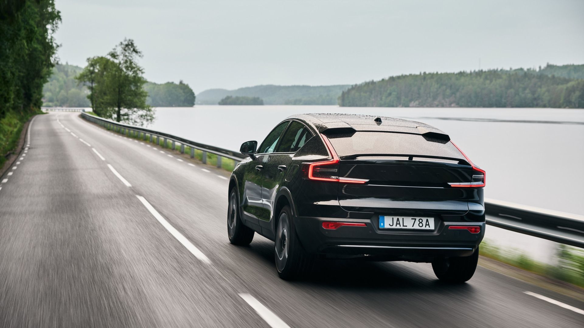 La ligne de toit inclinée de l'EC40 a déjà une allure sportive. L'ensemble Black Edition accentue cela davantage avec des détails monochromes qui suivent les lignes de la carrosserie.